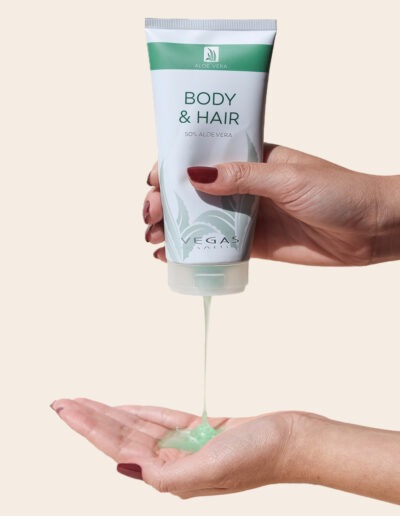 „Massiere das Aloe Vera Duschgel & Shampoo einfach in die feuchten Haare und auf den Körper ein. Genieße den sanften Schaum und den frischen Duft. Danach gründlich mit lauwarmem Wasser ausspülen. Da es so mild ist, kannst du es problemlos täglich verwenden – deine Haut wird es dir mit einem samtig-weichen Gefühl danken.“