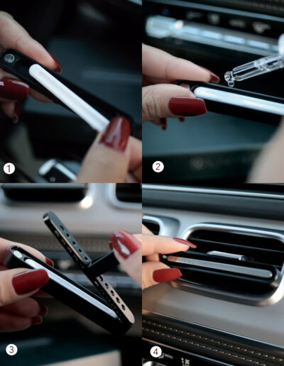 UN Ensemble diffuseur de voiture Voici la réponse moderne aux désodorisants classiques. Ce coffret est idéal pour tous ceux qui tiennent à un véhicule impeccable et à une ambiance agréable. L'alliance d'un design minimaliste et de compositions olfactives de haute qualité transforme chaque trajet – qu'il s'agisse des déplacements quotidiens ou d'un long voyage – en une expérience des plus plaisantes.