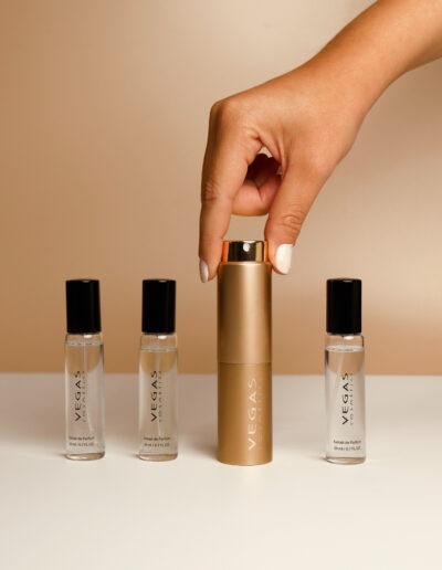 Des moments précieux à emporter avec vous : Votre signature olfactive „ Imaginez que vous ayez une réunion importante, un rendez-vous improvisé ou que vous soyez sur le point d'embarquer pour votre prochain vol. Vous voulez vous sentir frais et confiant – et c'est exactement ce que j'ai créé pour vous. » Pack Or Vegas Twist introduit dans mon univers du voyage.