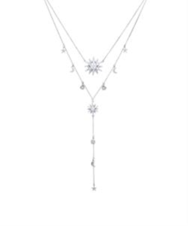 Collier double en argent sterling 925, plaqué rhodium.