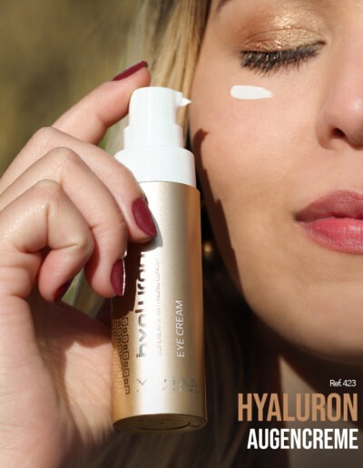Genießen: Spüre, wie die kühlende Textur der Hyaluron Augencreme 30ml sofort einzieht und deine Augenpartie modelliert.