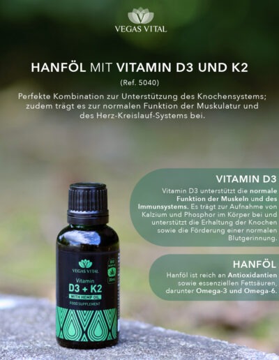 Vitamin D3 + K2 30ml | Hanföl-Basis | Vegas Vital